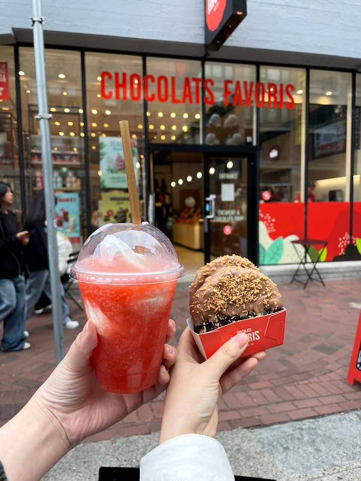 Chocolats Favoris joins the list of stores participating in the Ice Cream Festival this year, and they did not disappoint. The ice cream sandwich consists of soft vanilla ice cream nestled between two chewy triple chocolate cookies (you can also opt for the dulce de leche cookies). This decadent treat is dipped in Nanaimo bar-flavoured milk chocolate and topped with coconut—it tastes as good as it looks. Those looking for something more refreshing can opt for the ice cream float, where a sweet fruity slushie is topped with either vanilla ice cream or a vegan raspberry sorbet. chocolatsfavoris.com