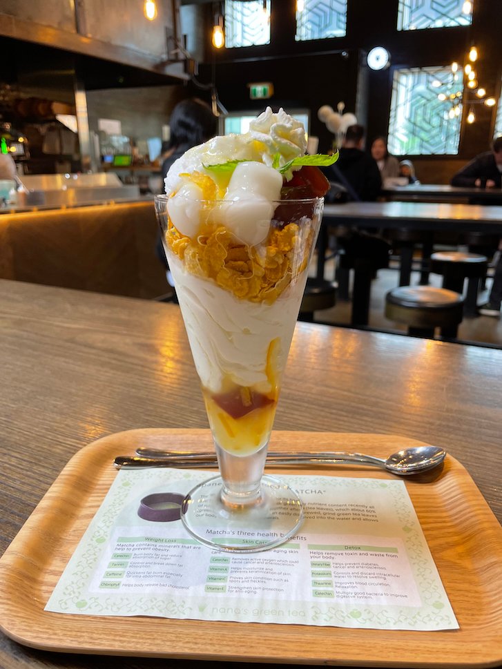 Beat the heat with this refreshing parfait from Nana’s Green Tea. The lemon sorbet is topped with a sweet yet light yuzu juice, and is paired with a mildly bitter black tea jelly and chewy shiratama balls. Dig deeper and you’ll find a creamy vanilla soft serve—two ice creams in one! Have a parfait all to yourself if your sweet tooth demands it, but I recommend sharing it with a friend or two so you can also get one of Nana’s signature matchas without having to unbutton your jeans. sevenleavestea.com