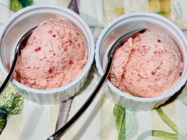 Of course, I made a second batch the proper way (though we could just say I followed the berry-picking rule – kept 3/4 cup of honey for myself and added only 1/4 to the ice cream). That second batch? So extraordinary, it almost didn’t survive long enough to firm up in the freezer for our after-dinner treat.