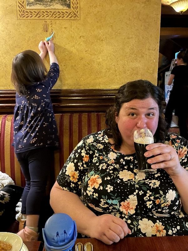 The author’s daughter on a beach in Bray, Ireland. (Photo courtesy of Kelly Lawlsro)Earlier in our trip we visited the Irish town of Bray, a picturesque Dublin suburb along the Irish Sea. At a restaurant Evie made a friend with a local Irish girl, and the pair decided to climb on a retaining wall in the outdoor seating area, which a waiter quickly told us wasn’t allowed. We stopped them, then headed to a playground. Next, we went to the pebble-stoned beach where Evie delivered hand-selected rocks to a group of teenagers nearby enjoying the unseasonably warm March day. The teens called her adorable, smiled and accepted their presents, then went back to their phones. We got ice cream and stopped for souvenirs and the store owner directed us to the nearest bathroom upon a potty emergency. We took the train back to Dublin, and Evie fell asleep amid the bustling rush hour commuters, and we carried her blissfully unaware and snoring back to our hotel.